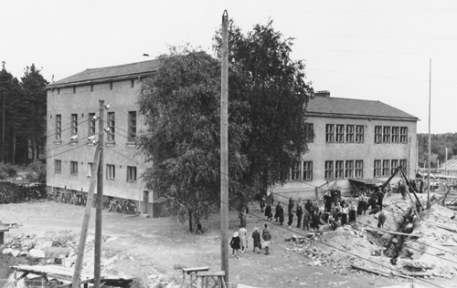 Koulu toimi pitkään Kauppalantalolla. Oma koulutalo valmistui 1938, laajennukset 1950,